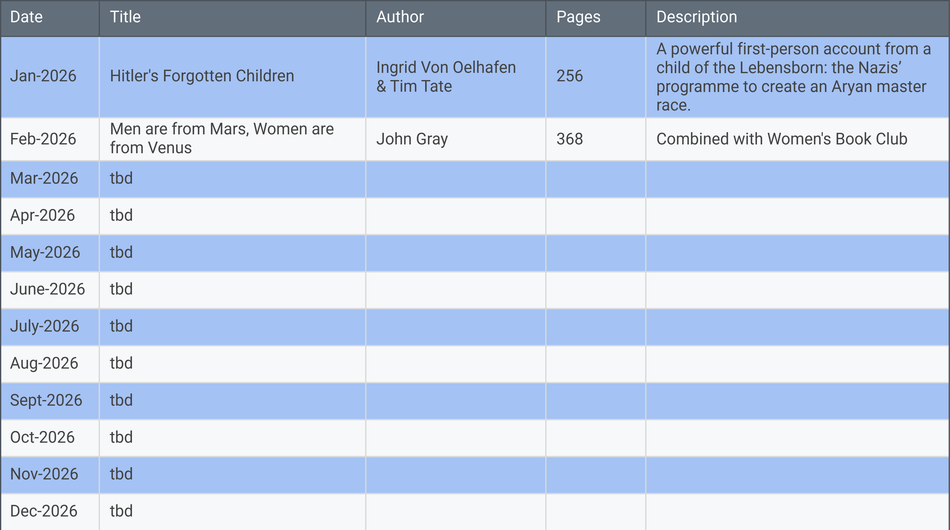 Women’s Book Club: Rescheduled to Thursday October 23rd, 2025 @ 6:30 pm
