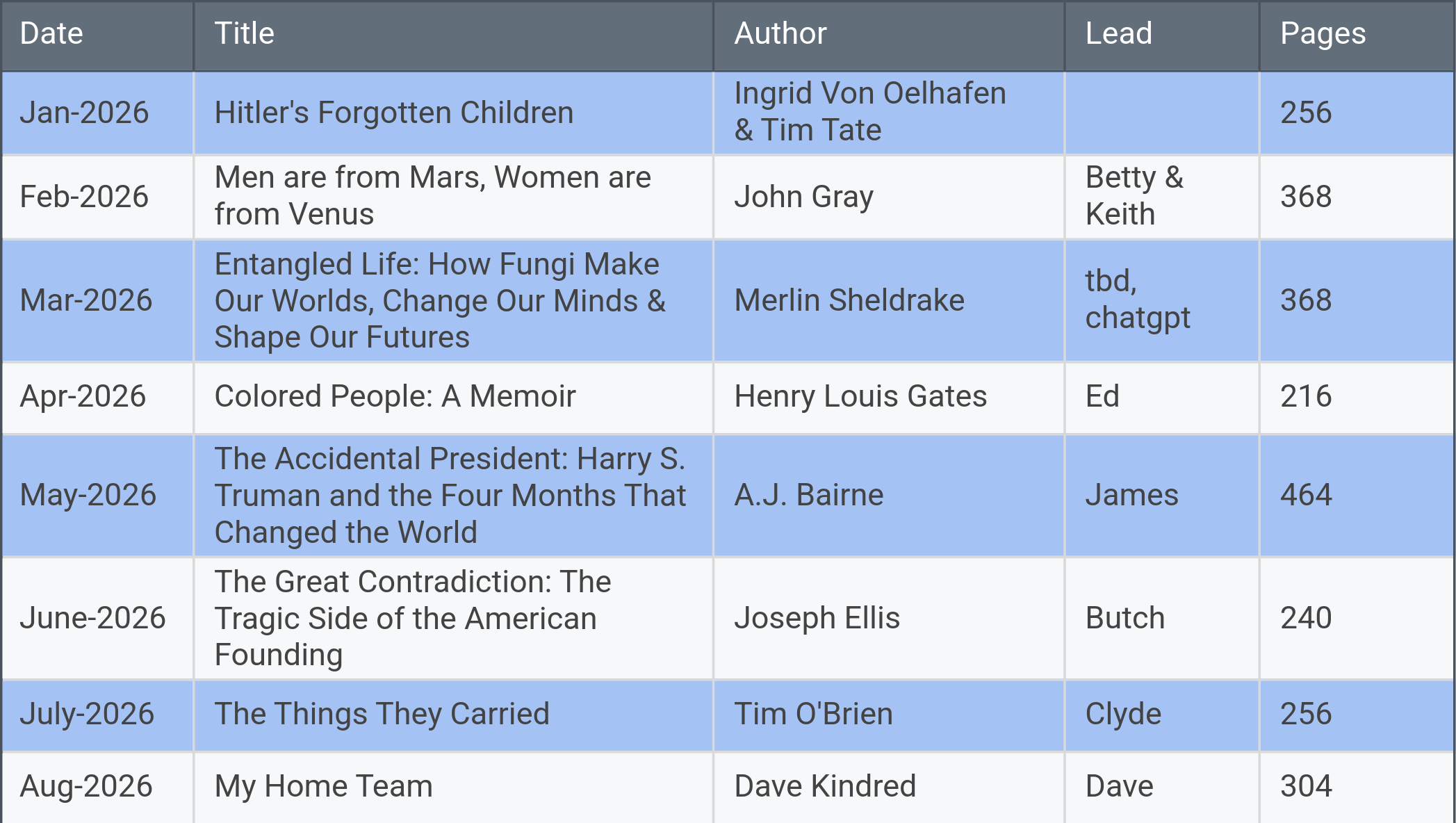 Men’s Book Club: The 3rd Thursday of the month @ 6:30 pm